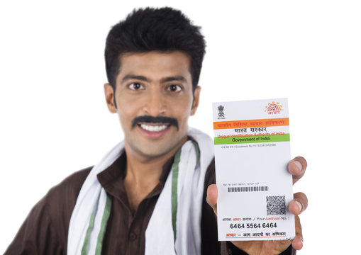 Rural Indian Farmer Showing aadhar card