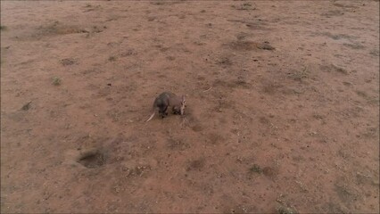 Footage of an aardvark (Orycteropus afer) looking for food in the drought
