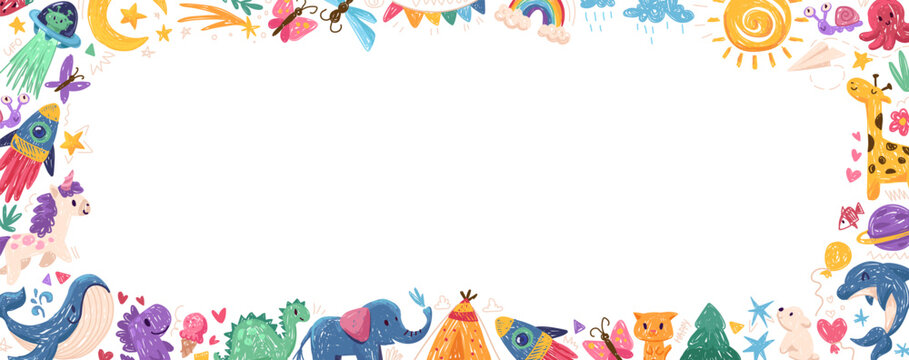 Cute Cartoon Alphabet with Playful Animals, Bokeh Background - Stock Photo