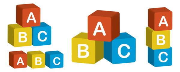 Colorful abc blocks child toy. Preschool learning, childhood, education, concept. 3d render illustration isolated on transparent background
