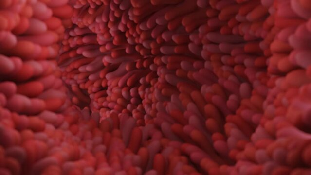 Intestinal villi. Intestine lining. Microscopic villi and capillary