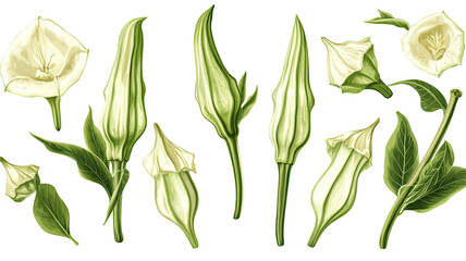 Abelmoschus esculentus on a white background.