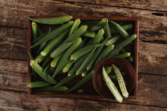 preparing fresh okra vegetables