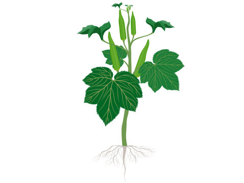 Abelmoschus esculentus on a white background.