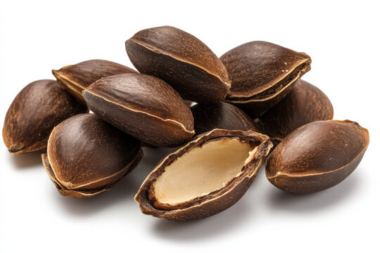 Abelmosk or Abelmoschus moschatus dried fruits and seeds isolated on white background.top view,flat lay.