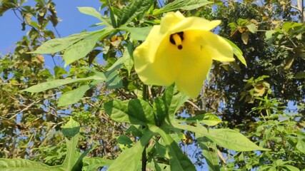 Musk mallow flower sways in the wind on sunny summer day
