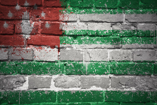 Detail of the national flag of Abkhazia waving in the wind on a clear day