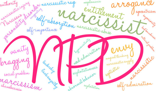 NPD Narcissistic Personality Disorder word cloud on a white background.