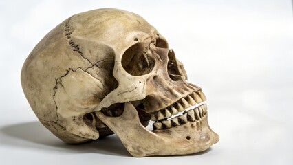 A human skull with sharp teeth in the style isolated on white background .
