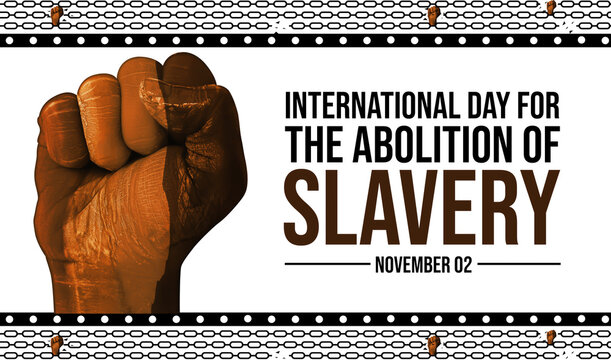 International Day for Abolition of Slavery December 2 graphic with chained hands and world map abolition slavery