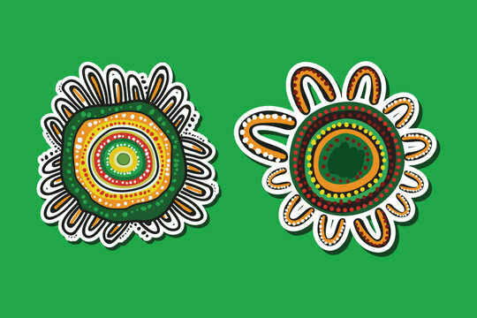 Snake. Aboriginal art style. Flat design style. Vector color illustration isolated on brown background.
