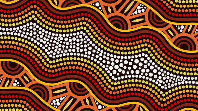 Aboriginal art vector painting. An illustration based on aboriginal style of dot painting depicting nature.
