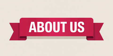 Red ribbon banner with white text " ABOUTUS" on a light background about us