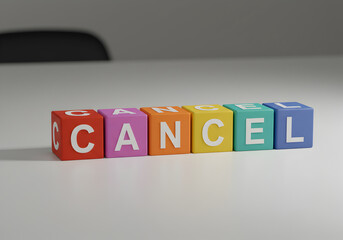 Cancel blocks colorful toy blocks cancellation policy cancel culture cancel subscription concept 100