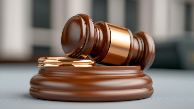Brown Wooden Gavel Striking Down Wedding Rings on Sound Block