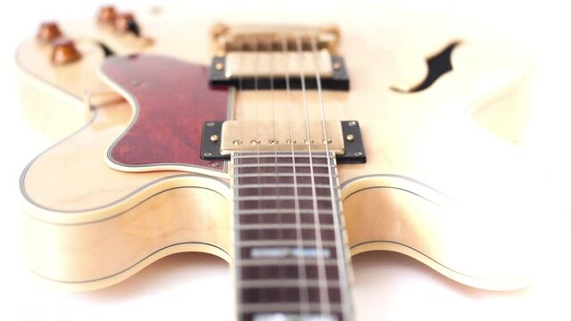 Music background stringed instrument electric guitar body and neck selective focus panning