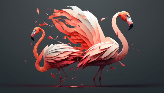 Abstract colorful oil, acrylic painting of bird and spring flower. Modern art paintings brush stroke on canvas. Illustration oil painting, animal and floral for background.