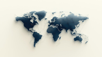 Minimalistic 3D world map on a soft blue gradient background. Simplified earth representation. Generative AI