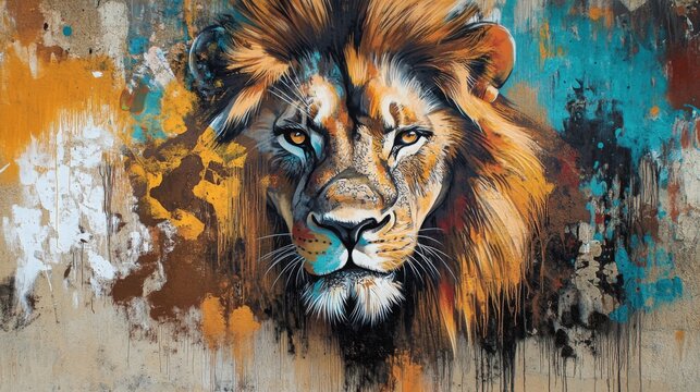 Vibrant lion mural showcasing artistic expression and urban culture in a bustling city