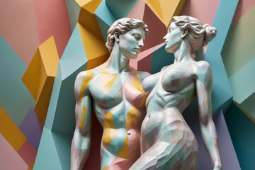 Abstract low poly head sculpture with sharp geometric faceted design for contemporary 3D portraits. Discover modern art of geometric low poly sculpture in sharp faceted portraits. 3D abstract design.