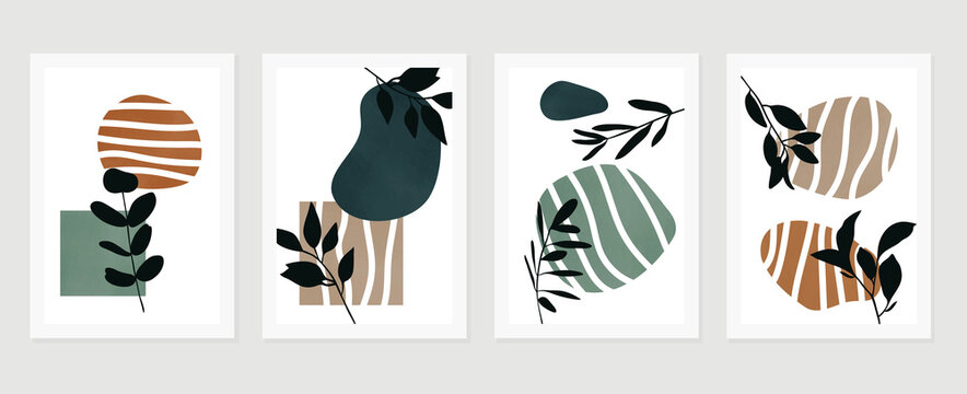 Abstract art nature background vector. Modern shape line art wallpaper. Boho foliage botanical leaves watercolor texture design for home deco, wall art, social media post and story background.