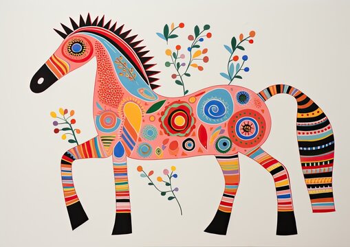 horses painted in folk art style