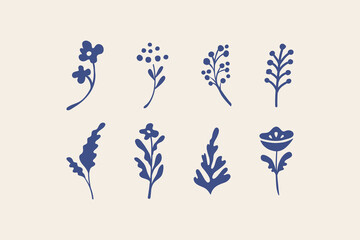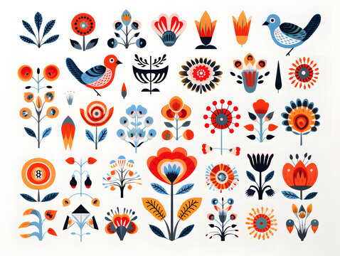 Neo folk art style woodcut illustration of abstract botanical forms for creative design