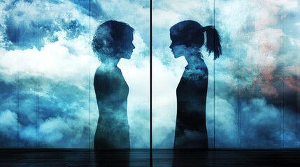 Group diversity silhouette multiethnic people from the side. Community of colleagues or collaborators. Concept of bargain agreement or pact. Collaborators. Co-workers. Harmony. Banner