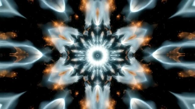 A mesmerizing 4K seamless loop of abstract kaleidoscope patterns with dynamic light effects.