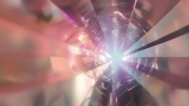 An abstract image depicting a kaleidoscope pattern with shimmering lights and vibrant colors. The central light seems to create a tunnel effect. The mood is dynamic and visually stimulating.