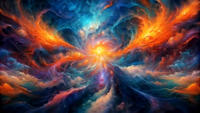 A gently undulating electric blue  and red digital fractal light wave with floating particles animation. This abstract technology concept motion background is 4K and a seamless loop.