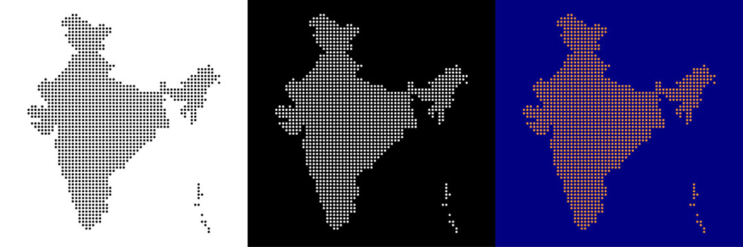 Map of India in dotted circles, pixels. Abstract Indian map from round dots on isolated black, white and blue background in graphic vector illustration in eps 10 - editable