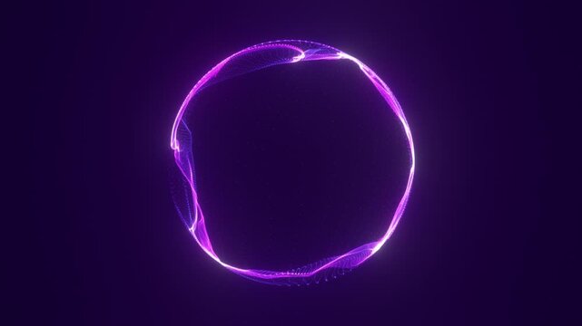 Digital sphere with abstract particles in purple color, a technological background of particles