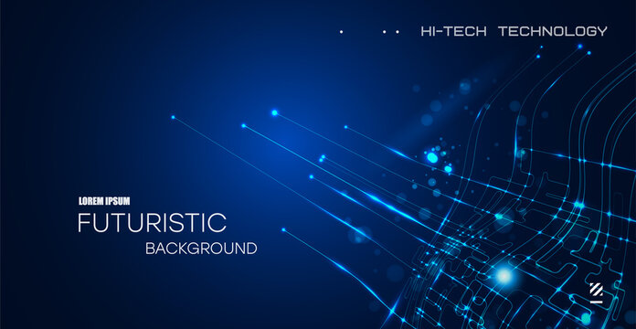 Abstract technological background. Futuristic illustration of high computer and communication technologies on a blue background. High tech digital technology, global social media concept.