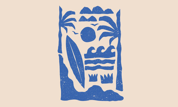 Ocean abstract wave art. Here come the sun. Summer vibes artwork. Surf club design. Beach modern abstract art.