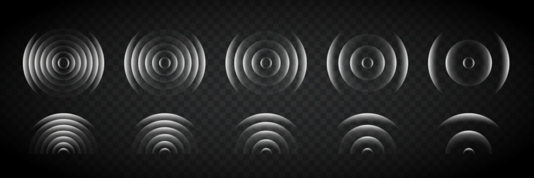 Round light effect. Wifi range. Sound wave. Signal concentric circle. Radio station signal. Water ripple with circle waves. A place or a painful point. Radar screen. Vector effect.