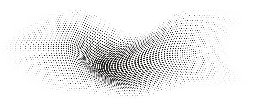 Flowing Wave Dot Halftone Pattern: Curve Gradient Shape on Transparent Background. Suitable for AI, Tech, Network, Digital, Science, and Technology Themes.