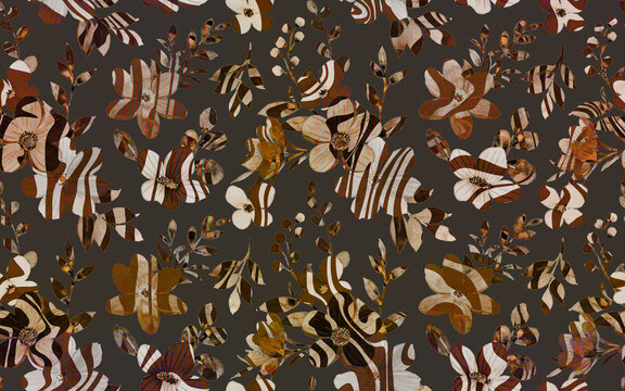 Square composition with abstrct vintage roses. 2d illustrated seamless pattern with stylized multicolor roses.