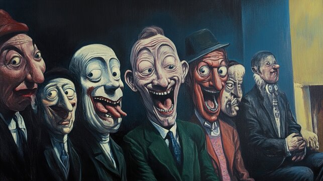 Grotesque Laughter: A Surreal Group Portrait Painting