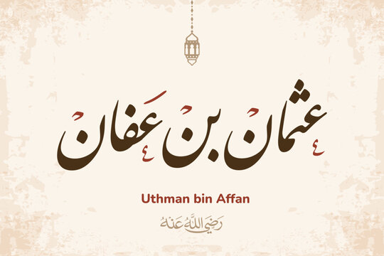 Islamic Calligraphy Abu Bakar Radhiyallahu Anhu Friend Prophet Muhammad With Green Background, For Banners And Greeting Cards
