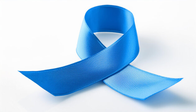 Blue awareness ribbon on white backdrop. Support for child abuse and prevention, anti-bullying