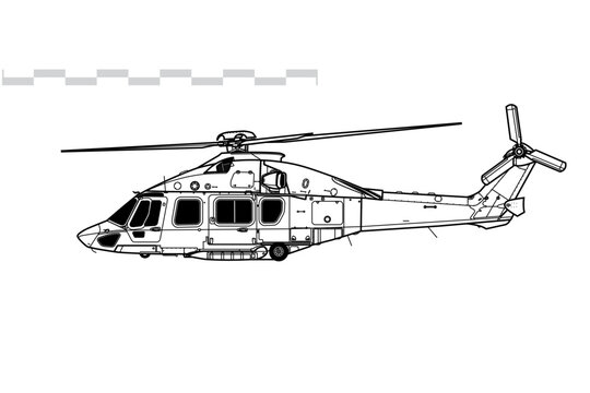 Airbus Helicopters H175, Eurocopter EC175. Vector drawing of medium lift utility helicopter. Side view. Image for illustration and infographics.