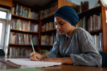 Young woman studying in library
