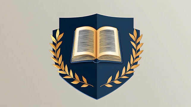 School shield logo featuring an open book and a laurel wreath, symbolizing knowledge and achievement, shield school, academic shield