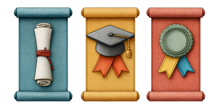 Educational brand identity logo featuring a graduation cap above an open book with abstract colorful triangular elements.
