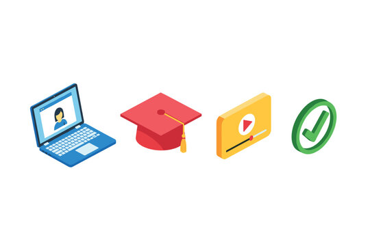 Educational icons representing learning, teaching, and academic achievements in a simplified style for digital use