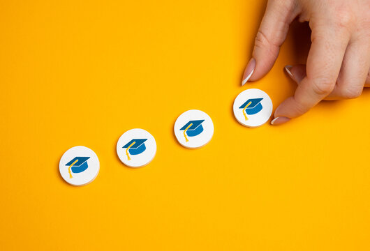 Steps of education leading to success goal. Taking strategic steps towards graduation. Career path and first for business, Graduation achievement goals concept.