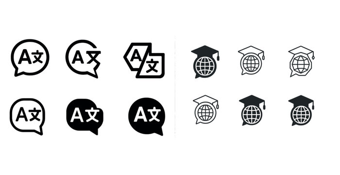 Educational Icon Collection: A comprehensive set of line art icons representing various aspects of education, from academic supplies and graduation symbols to scientific elements.