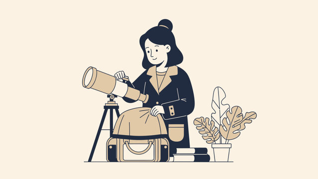 Woman Preparing Telescope For Astronomical Observation And Scientific Discovery