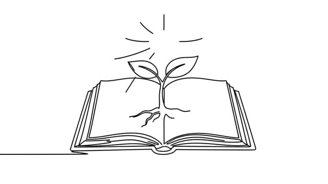 Elegant monochrome line art illustration of open books, embodying the expansive journey of knowledge, the continuous flow of learning, and the profound essence of literature